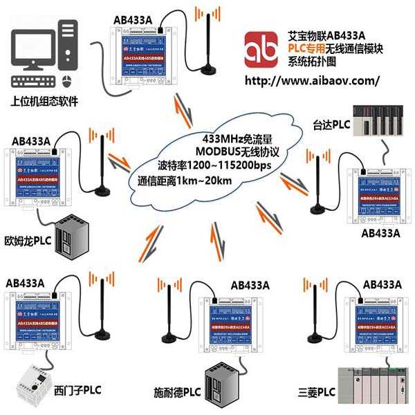 AB433A 485信號無線模塊具有 RS485 和 RS232 透傳功能,波特率最高19200bps,支持MODBUS RTU、MODBUS ASCII和自由口協(xié)議,可實(shí)現(xiàn)PLC間無線通信,PLC與觸摸屏間無線通信??梢怨ぷ髟邳c(diǎn)對點(diǎn)模式:將 A 點(diǎn)的RS485 或者 RS232 信號無線傳輸?shù)?B 點(diǎn), 同時(shí)可將 B 點(diǎn)的 RS485 或者 RS232 信號無線傳輸?shù)?A 點(diǎn)。 也可以工作在點(diǎn)對多模式:實(shí)現(xiàn)A、B、C、D...點(diǎn)之間RS485和RS232信號的透傳。