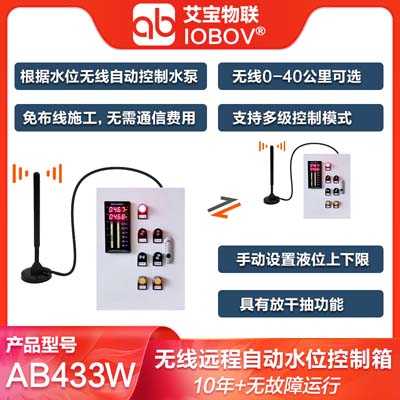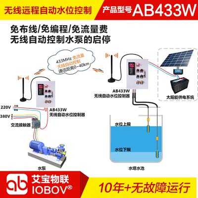 AB433W具有無線自動水位顯示及控制功能,支持太陽能電源供電,光電隔離輸入直接接浮球開關(guān),繼電器輸出。發(fā)送端停電的情況下,接收端自動斷開,增加系統(tǒng)的可靠性??蓪⑺恍畔o線傳輸?shù)奖谜?,泵站的無線模塊根據(jù)水位狀態(tài)自動控制水泵的啟停。可以工作在點對點模式:一個水池和一個泵站;也可以工作在點對多模式:多個水池和泵站之間無線自動控制。AB433W無線終端采用無線電數(shù)字加密通信技術(shù),抗干擾能力強,可替代電纜,無需挖溝布線,大大降低企業(yè)人力物力成本,減少施工和維護難度。![]() 發(fā)射端:上水位輸入接水位上限浮球開關(guān);下水位輸入接水位下限浮球開關(guān)。 接收端:繼電器1代表無線通信狀態(tài),當(dāng)通信正常時繼電器1閉合,當(dāng)超過10秒(默認(rèn)10秒,可在出廠時更改)沒有收到發(fā)射端的數(shù)據(jù),繼電器1斷開;繼電器2根據(jù)上下水位狀態(tài)而改變。建議繼電器1和繼電器2串聯(lián)使用,這樣當(dāng)發(fā)射端斷電的情況下,水泵自動關(guān)閉。 AB433W無線水位自動控制器,主要是針對遠距離的水塔、山頂蓄水池及江河水位監(jiān)測而設(shè)計的全自動無線電測控系統(tǒng)??筛鶕?jù)用戶需求自由配置。針對工業(yè)用戶,全工業(yè)級防雷設(shè)計,久經(jīng)工業(yè)現(xiàn)場考驗,質(zhì)量穩(wěn)定可靠。免編程,撥碼開關(guān)即可設(shè)置所有工作參數(shù)。產(chǎn)品體積小巧,標(biāo)準(zhǔn)導(dǎo)軌安裝。廣泛應(yīng)用于工業(yè)自動化、廠礦、電力、水利、環(huán)保、農(nóng)業(yè)等領(lǐng)域。 |