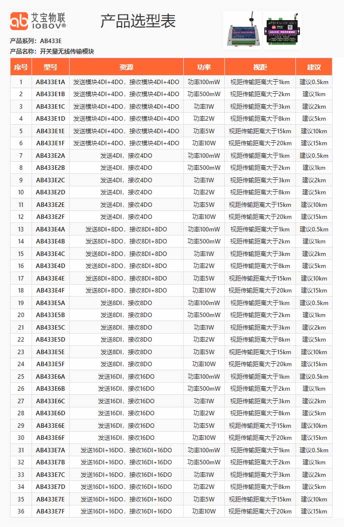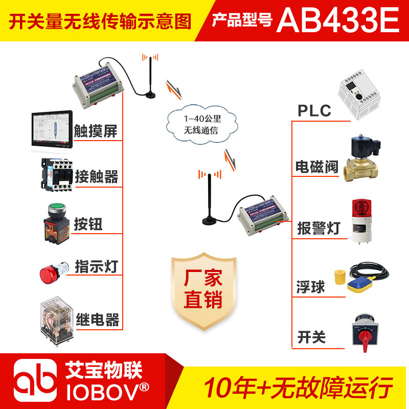 艾寶物聯(lián)IOBOV,是一家國(guó)家高新技術(shù)企業(yè),專注于工業(yè)無線測(cè)控和數(shù)傳通信,以超遠(yuǎn)傳輸距離、穩(wěn)定可靠的性能,賦能多樣化工業(yè)應(yīng)用場(chǎng)景,并在客戶中獲得了廣泛的認(rèn)可。 主要產(chǎn)品包括各種類型的無線傳輸模塊,如開關(guān)量無線傳輸模塊(AB433)、模擬量無線傳輸(AB433F),PLC無線傳輸模塊(AB433A),PLC以太網(wǎng)無線傳輸模塊(AB433L)等。 其中,艾寶物聯(lián)的無線產(chǎn)品在金堆城鉬業(yè)集團(tuán)有限公司的嚴(yán)苛環(huán)境中,實(shí)現(xiàn)了超過10年的無故障運(yùn)行時(shí)間,證明了卓越的穩(wěn)定性和可靠性。