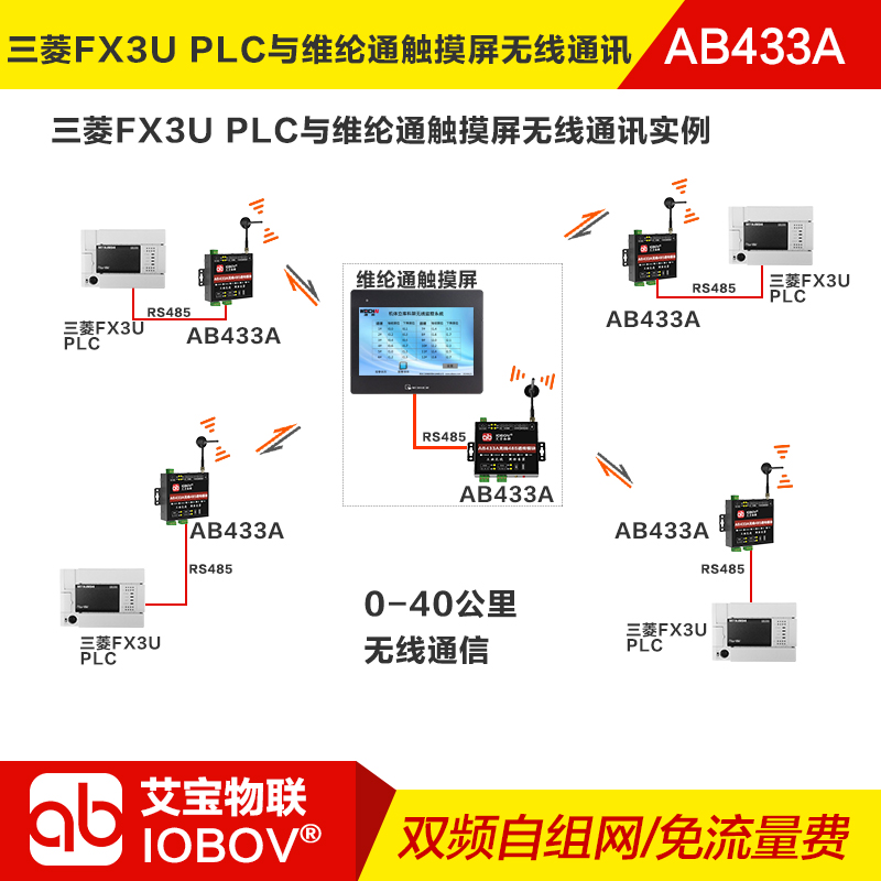 客戶要實(shí)現(xiàn)遠(yuǎn)程監(jiān)控與控制系統(tǒng),采用維綸通觸摸屏作主控,通過艾寶物聯(lián)網(wǎng)的AB433A無線終端與4臺FX3U PLC(已擴(kuò)展RS-485接口)建立穩(wěn)定通信。系統(tǒng)支持精確讀寫PLC寄存器,實(shí)現(xiàn)遠(yuǎn)程實(shí)時監(jiān)控與控制,包括設(shè)備狀態(tài)、參數(shù)調(diào)整及故障診斷,提升監(jiān)控靈活性與生產(chǎn)效率。
