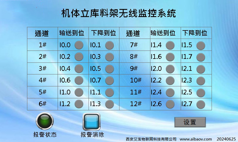 構(gòu)建觸摸屏畫面顯示12個開關(guān)量狀態(tài),分別標(biāo)記為I0.0至I0.7、I1.0至I1.7、I2.0至I2.7,對應(yīng)三臺PLC的各自8路開關(guān)量輸入。