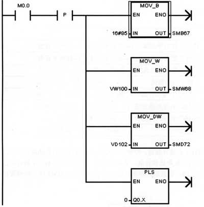 首先,確定使用哪個端口來發(fā)脈沖,如采用Q0.0發(fā)脈沖,則它的控制字為SMB67,脈沖同期為SMW68,脈 沖個數(shù)存放在SMD72中,