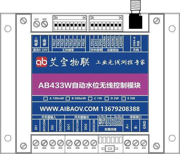 | 例如訂購(gòu)型號(hào)AB433W1D表示:上水池供水功能,水位達(dá)到上限自動(dòng)關(guān)泵,水位達(dá)到下限自動(dòng)開(kāi)泵;無(wú)線功率2W,傳輸距離5km。 |