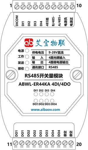 | 功能描述 | 標(biāo)準(zhǔn)Modbus RTU協(xié)議,用來描述設(shè)備的資源,比如:4AI/4DO。 |
