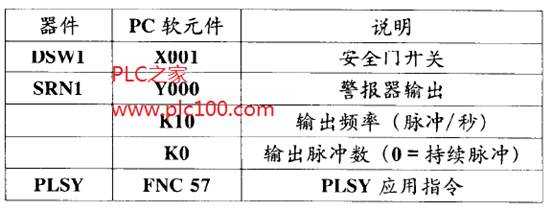 警報(bào)器活動(dòng)過(guò)程可以通過(guò)限定PLSY指令發(fā)出的脈沖數(shù)來(lái)控制。本例中,通過(guò)設(shè)置K0可得到連續(xù)脈沖輸出。