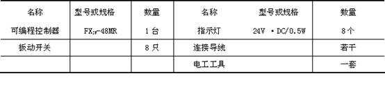 表1所列為采用實驗模板所需的輸入輸出設備情況。利用扳動開關取代傳感器,用指示燈代替各泵和攪拌器。