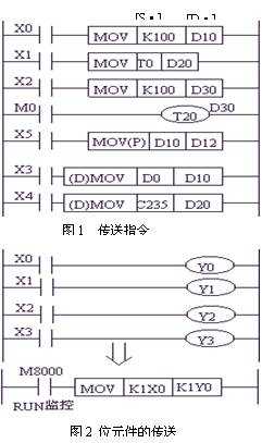 如圖2所示,可用MOV指令等效實(shí)現(xiàn)由X0~X3對(duì)Y0~Y3的順序控制。