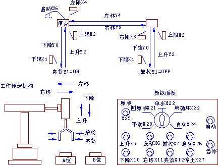 所示為用機(jī)械手移送工件的機(jī)械系統(tǒng)。左上為原點,工件按下降→夾緊→ 1