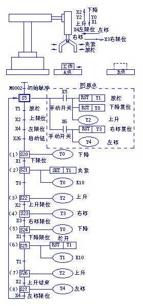 Y0 動(dòng)作,接著下限位開關(guān)