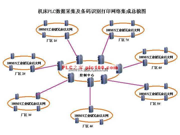 從以上兩點(diǎn)來看,該網(wǎng)絡(luò)更接近于城域網(wǎng)。根據(jù)IEEE802局域網(wǎng)標(biāo)準(zhǔn)委員會的最初定義,城域網(wǎng)(MAN)是以光纖為通信媒體,能提供高速率(大于45Mbit/s),支持?jǐn)?shù)據(jù)、話音和圖形的綜合業(yè)務(wù)傳輸,在跨度為50km—150km的城市覆蓋范圍內(nèi)實(shí)現(xiàn)高速/寬帶傳輸?shù)臄?shù)據(jù)通信網(wǎng)絡(luò)??梢钥闯?,機(jī)床PLC數(shù)據(jù)采集及條碼識別打印網(wǎng)絡(luò)通信網(wǎng)僅在覆蓋范圍上小于城域網(wǎng)。由于工程的特點(diǎn)決定了其通信系統(tǒng)適宜采用自建光纜的形式組建專用網(wǎng)絡(luò),因而,在廠區(qū)內(nèi)的網(wǎng)絡(luò)可以用雙絞線組成冗余度較高的環(huán)型網(wǎng)絡(luò)。