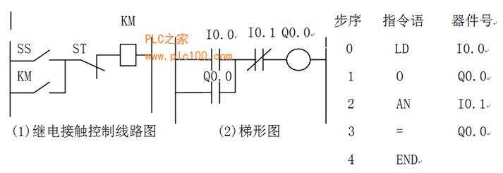 下例為PLC實(shí)現(xiàn)三相鼠籠電動機(jī)起/停控制的兩種編程語言的表示方法:
