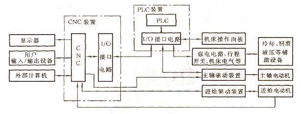 圖1 獨(dú)立型PLC的CNC系統(tǒng)框圖