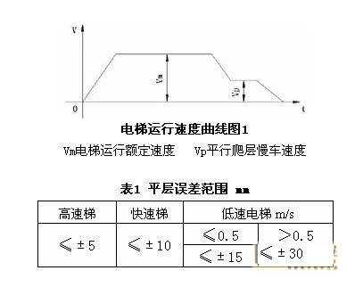 根據(jù)電梯運(yùn)行的特點(diǎn)及以上要求,電梯的運(yùn)行速度應(yīng)當(dāng)符合圖1所示曲線。平層誤差應(yīng)符合表1規(guī)定。
