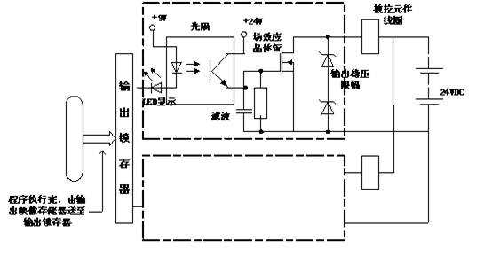 PLC的輸出有三種形式,即繼電器輸出、晶體管輸出、晶閘管輸出。如圖所示: