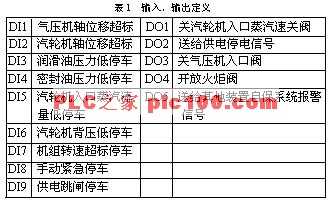 在催化裂化裝置中,從沉降器出來(lái)的油氣經(jīng)分餾塔分餾后得到粗汽油、柴油和富氣,富氣從分餾塔頂出來(lái)經(jīng)氣壓機(jī)壓縮后送到穩(wěn)定塔,與粗汽油在穩(wěn)定塔內(nèi)充分互溶,得到穩(wěn)定汽油。在這部分流程中,氣壓機(jī)是最關(guān)鍵的設(shè)備,它的運(yùn)行是否平穩(wěn)直接影響著整個(gè)流程。如果氣壓機(jī)受到損壞,會(huì)對(duì)單位的經(jīng)濟(jì)效益產(chǎn)生極大的影響。因此,對(duì)氣壓機(jī)組的保護(hù)是至關(guān)重要的。該廠80x104 t/a重油催化裂化氣壓機(jī)組采用的是電機(jī)-氣壓機(jī)-汽輪機(jī)三機(jī)組,在裝置開(kāi)工時(shí)采用汽輪機(jī)啟動(dòng)機(jī)組,達(dá)到額定轉(zhuǎn)速(6000轉(zhuǎn))后開(kāi)啟電動(dòng)機(jī),采用雙動(dòng)力三機(jī)組的形式,主要是為了增加機(jī)組運(yùn)行的可靠性。機(jī)組的主要聯(lián)鎖參數(shù)包括氣壓機(jī)軸位移超標(biāo)停車、汽輪機(jī)軸位移超標(biāo)停車、潤(rùn)滑油壓力低停車、密封油壓力低停車、汽輪機(jī)入口蒸汽流量低停車、汽輪機(jī)背壓低停車、機(jī)組轉(zhuǎn)速超標(biāo)停車、手動(dòng)緊急停車、供電跳閘停車等,這些量都是開(kāi)關(guān)量輸入,其中任意一項(xiàng)或多項(xiàng)出現(xiàn),都要求PLC能迅速切斷汽輪機(jī)入口蒸汽速關(guān)閥和電機(jī)電源,同時(shí)關(guān)閉氣壓機(jī)入口閥,打開(kāi)放火炬閥,以保證氣壓機(jī)及裝置的安全。