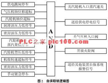 在石油加工工業(yè)中,大型旋轉(zhuǎn)機(jī)組是裝置設(shè)備的重要組成部分,如催化裂化裝置的主風(fēng)機(jī)、氣壓機(jī)組、煙氣輪機(jī)及汽輪機(jī)組等。這些機(jī)組功率大,運(yùn)行條件苛刻,控制系統(tǒng)復(fù)雜,是化工生產(chǎn)中的關(guān)鍵設(shè)備。因此,對(duì)這些設(shè)備在突發(fā)事故中的保護(hù)是至關(guān)重要的?,F(xiàn)在各大石油化工企業(yè)普遍采用的是專用ESD緊急停車系統(tǒng),系統(tǒng)結(jié)構(gòu)復(fù)雜,成本高(上百萬(wàn)元)。針對(duì)上述情況,沈陽(yáng)石蠟化工有限公司80x104 t/a 重油催化裂化氣壓機(jī)組的聯(lián)鎖-自保系統(tǒng)采用了PLC 進(jìn)行系統(tǒng)構(gòu)建,其在隨后的生產(chǎn)過(guò)程中表現(xiàn)穩(wěn)定,動(dòng)作可靠,多次在事故狀態(tài)下對(duì)機(jī)組及生產(chǎn)裝置實(shí)行了自我保護(hù),杜絕了惡性事故的擴(kuò)大和蔓延,取得了顯著的效果。