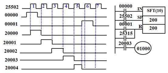 第一個移位脈沖輸入后,00000的ON狀態(tài)移入20000。