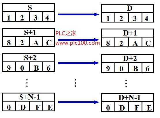 在執(zhí)行條件為ON時,將幾個連續(xù)通道中的數(shù)據(jù)傳送到另外幾個連續(xù)通道中。