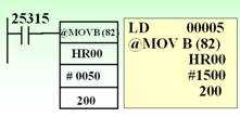 在PLC上電之初,將HR0000的內(nèi)容傳送到 20015中 。