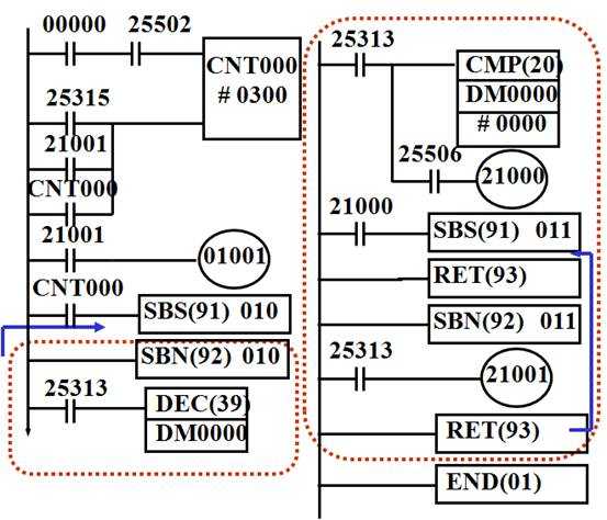 ⑤執(zhí)行子程序010時,若25506 OFF則返回主程序。