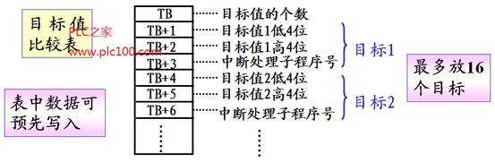 在高速計(jì)數(shù)器計(jì)數(shù)過(guò)程中,若其當(dāng)前值與比較表中某個(gè)目標(biāo)值相同時(shí),則停止執(zhí)行主程序而轉(zhuǎn)去執(zhí)行與該目標(biāo)值對(duì)應(yīng)的子程序。