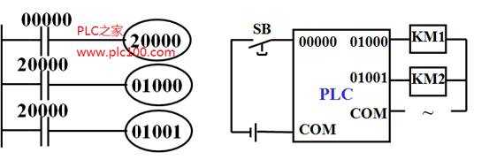 當SB閉合,經過輸入濾波,設第一個掃描周期I/O刷新時 00000的映像寄存器 ON。