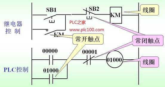 物理繼電器與歐姆龍PLC繼電器的符號及控制梯