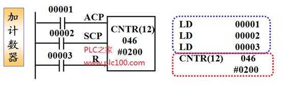 00001每輸入一個(gè)計(jì)數(shù)脈沖,CNTR 046的當(dāng)前值加1。