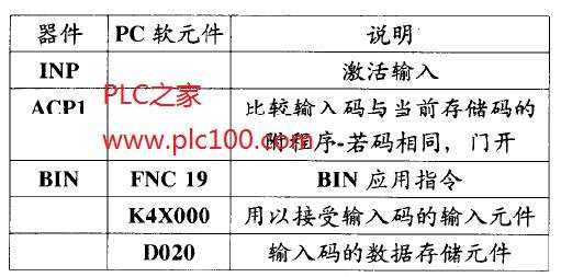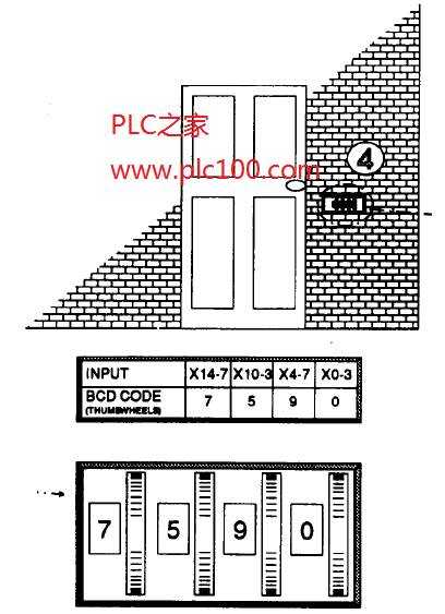 接著別的程序結(jié)構(gòu)就能根據(jù)比較結(jié)果拒絕或允許通行。如果研究數(shù)據(jù)輸出的“機(jī)械結(jié)構(gòu)”,就可看到數(shù)據(jù)以BCD格式從指輪傳送到PC,即4條信號(hào)/輸入線用來(lái)表示每個(gè)指輪上的選擇的每個(gè)數(shù)字。本節(jié)例子中,K4X000被確定,這意味著輸入X000至X017將被使用。X000作為輸入數(shù)據(jù)區(qū)的首地址。