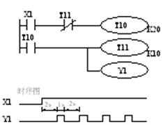 三菱FX系列PLC振蕩電路的梯形圖和時序圖
