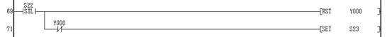 狀態(tài)轉(zhuǎn)移到S22,對(duì)Y0清除指令,即停止進(jìn)水.當(dāng)Y0停止時(shí),即Y0非置1,狀態(tài)轉(zhuǎn)移到S23.