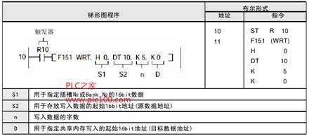 當觸發(fā)器R10變?yōu)?/span>ON時,將存儲在CPU的DT10--DT14的5個字的數(shù)據(jù)寫入智能單元模塊(位于插槽0)中從K0到K4的共享內存.