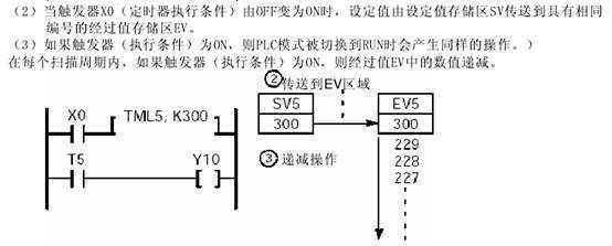 (1)當(dāng)PLC模式切換到RUN、或在RUN模式卜接通電源后,設(shè)定值被傳送到與定時(shí)器具有相同編號(hào)的設(shè)定值存儲(chǔ)區(qū)S。