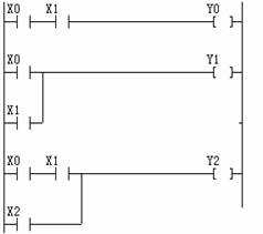 t6~t7; t12~t15是X2控制Y2,所以X0,X1相“與”再和X2相“或”后控制Y2,如右圖所示。