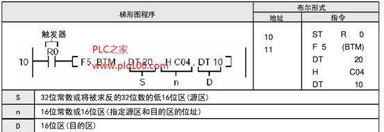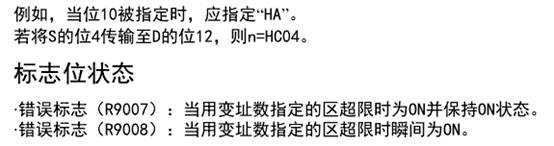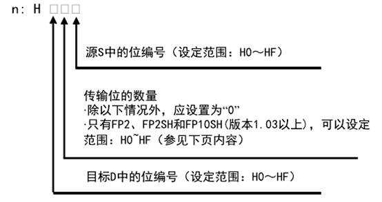 將由S指定16位數(shù)據(jù)或16位常數(shù)中的一個數(shù)據(jù)位,復(fù)制到由D指定的數(shù)據(jù)區(qū),數(shù)據(jù)位由n指定對于FP2SH和FP10SH,允許一次傳輸多個數(shù)據(jù)位。