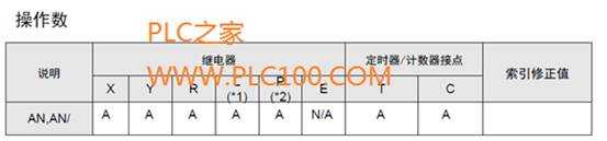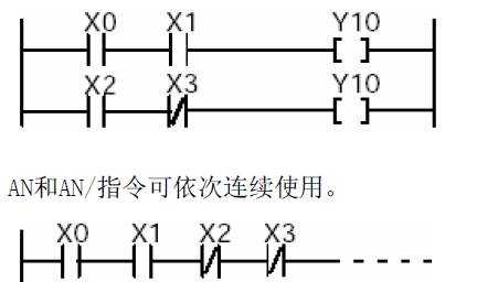 當常閉的觸點(B型觸點)串連時,使用AN/指令。