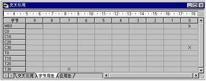 單擊 “交叉引用”窗口底部的標(biāo)簽,可以查看“交叉引用”表、“字節(jié)用法”表或“位用法”表。