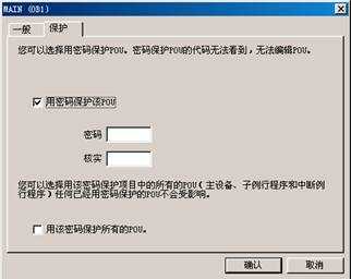 “屬性”對(duì)話框中有兩個(gè)標(biāo)簽:一般和保護(hù)。選擇“一般”可為子程序、中斷程序和主程序塊(OB1)重新編號(hào)和重新命名,并為項(xiàng)目指定一個(gè)作者。選擇“保護(hù)”則可以選擇一個(gè)密碼保護(hù)POU,以便其他用戶無(wú)法看到該POU,并在下載時(shí)加密。若用密碼保護(hù)POU,則選擇“用密碼保護(hù)該POU”復(fù)選框。輸入一個(gè)四個(gè)字符的密碼并核實(shí)該密碼。如圖16所示。