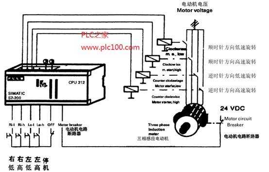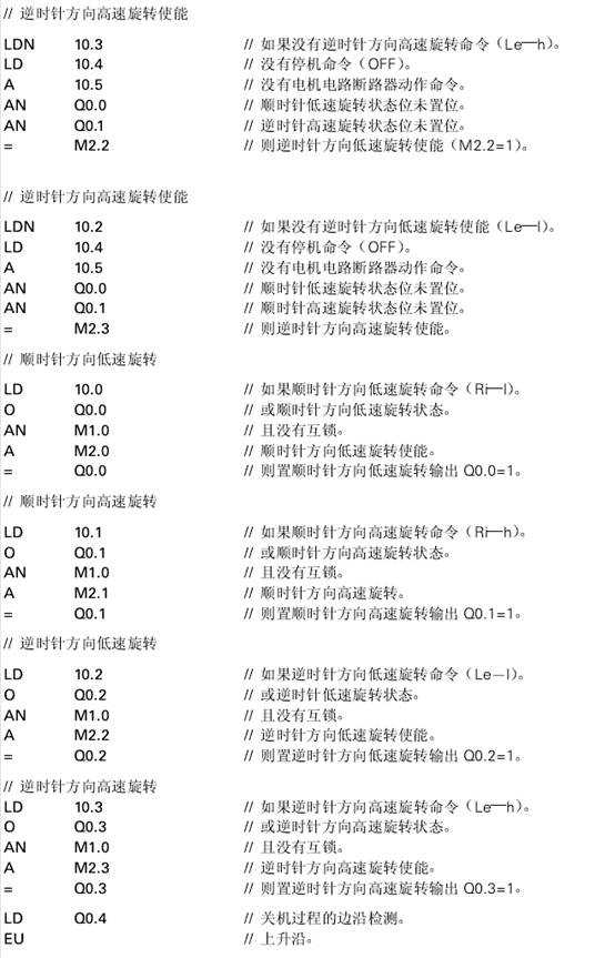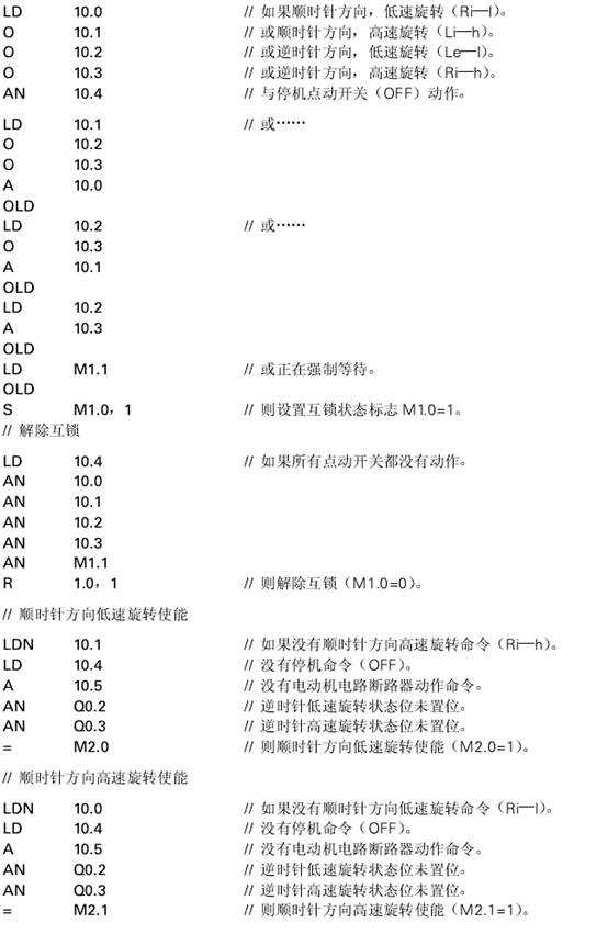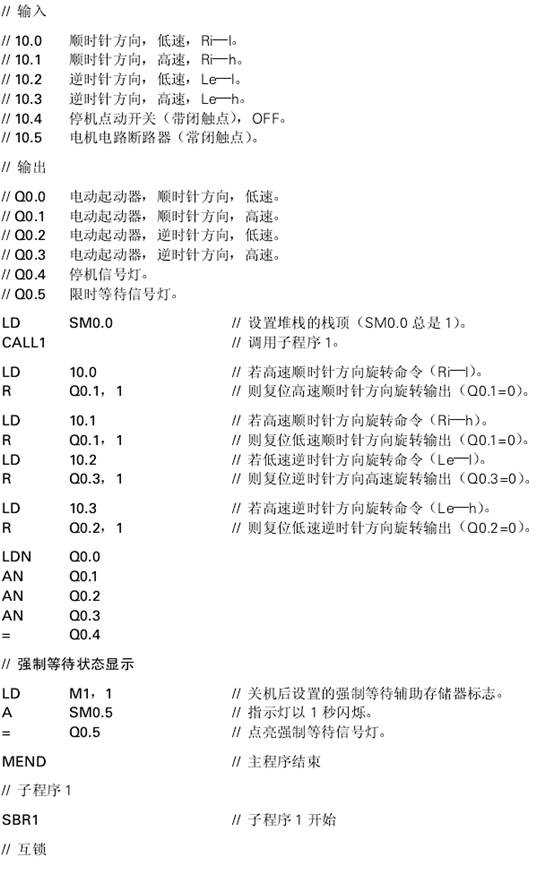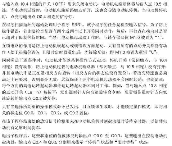 這個示例程序用來控制一臺三相感應電動機,該電動機具有兩個單獨的繞組,對應小同的轉速和旋轉方向。該示例程序是對應用程序示例10的擴展。