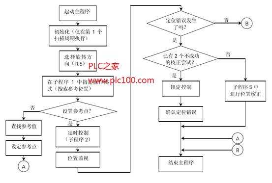 如果在兩次校正嘗試之后還小能達(dá)到設(shè)定位置,為女全起見(jiàn),控制將被鎖定(M0.2=1 )。只有按下確認(rèn)按鈕I1.4之后,控制才被打開(kāi),然后,進(jìn)行另一個(gè)參考點(diǎn)的檢測(cè)。