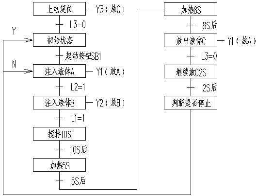 8S后停止加熱,同時放出混合液體C,當液面降至L3時,繼續(xù)放2S,2S后停止放出液體,同時重新注入液體A,開始下一次混合。