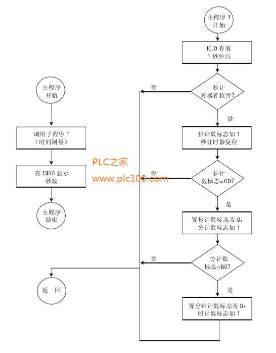 當分鐘計數(shù)標志達到60時,小時計數(shù)標志VW0增加1,分鐘計數(shù)標志被置為0。子程序結(jié)束。