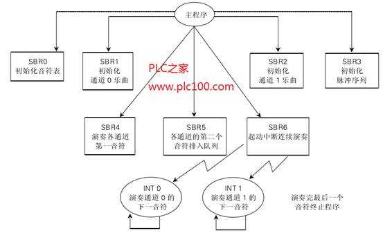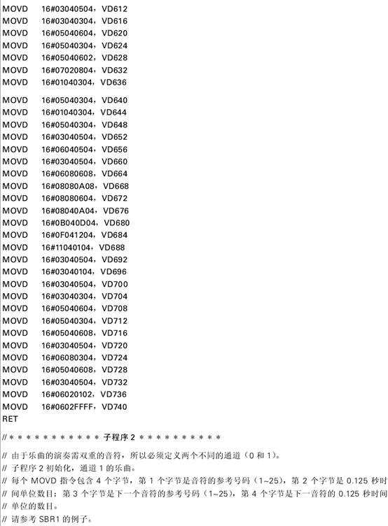 中斷子程序附著于P丁O完成事件。第一個音符演奏完,中斷程序調(diào)用下一個音符。這個過程繼續(xù)下去,自到樂曲結(jié)束。