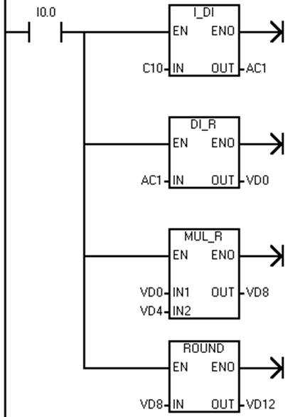 注意:在程序中VD0、VD4、VD8、VD12,都是以雙字(4個(gè)字節(jié))編址的。