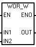 2. 邏輯或(WOR)指令:將輸入IN1,IN2按位相或,得到的邏輯運(yùn)算結(jié)果,放入OUT指定的存儲(chǔ)單元。