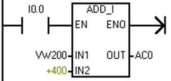 求5000加400的和,5000在數(shù)據(jù)存儲器VW200中,結(jié)果放入AC0。程序如圖所示。