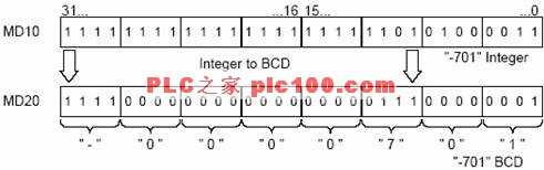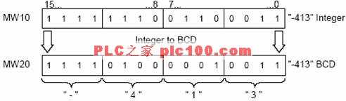 說明:將累加器1低字中的3位BCD碼數(shù)轉(zhuǎn)換為16位整數(shù),裝入累加器1的低字中(0~11位);低字的最高位(15位)為符號位。
