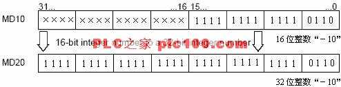 說明: 將累加器l低字中的16位整數(shù)轉(zhuǎn)換為32位整數(shù),16位整數(shù)的范圍是-999~+999。如果欲轉(zhuǎn)換的數(shù)據(jù)超出范圍,則有溢出發(fā)生,同時將OV和OS位置位。