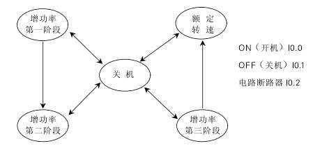 按接在輸入端I0.0的點動開關(guān)ON即可開始平穩(wěn)地啟動電機。再按接在輸入端I0.1的點動開關(guān)OFF即可停比電機。電機電路斷路器接在輸入端I0.2,當電機過載時輸入端I0.2打開,電機停止。