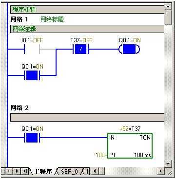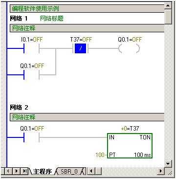 當(dāng)I0.1觸點(diǎn)斷開時(shí),編程軟件使用示例的程序狀態(tài)如圖1所示。②